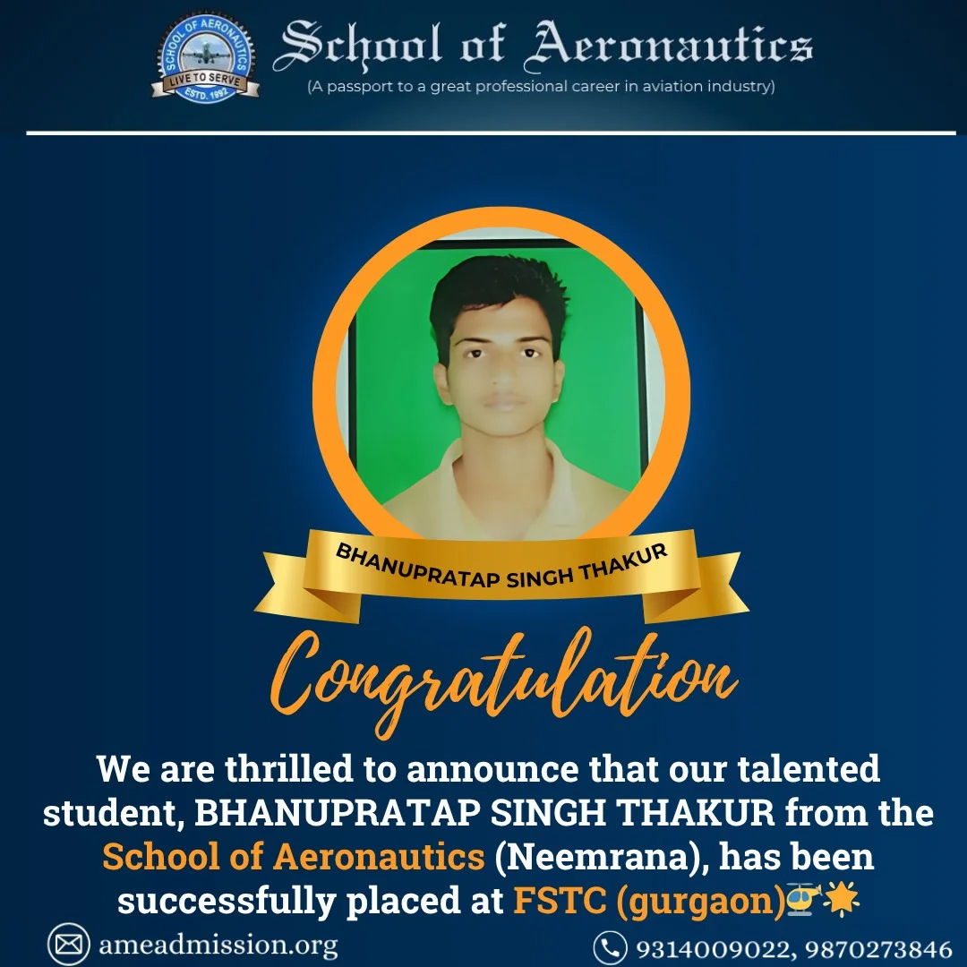 The School of Aeronautics shaped my entire aviation journey. The blend of theory, practical training, and mentorship helped me secure my first job with confidence.