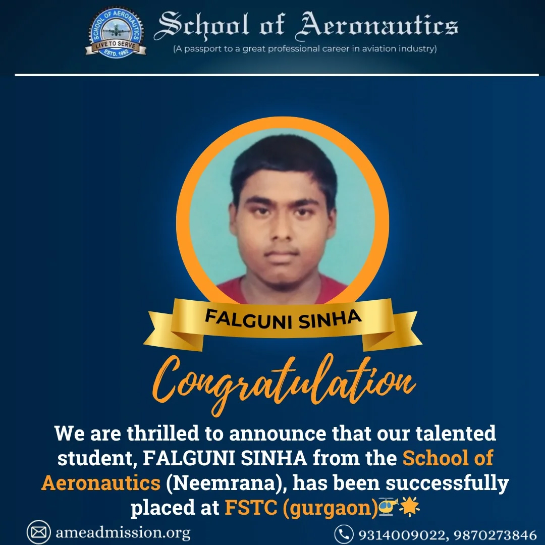 The School of Aeronautics shaped my entire aviation journey. The blend of theory, practical training, and mentorship helped me secure my first job with confidence.